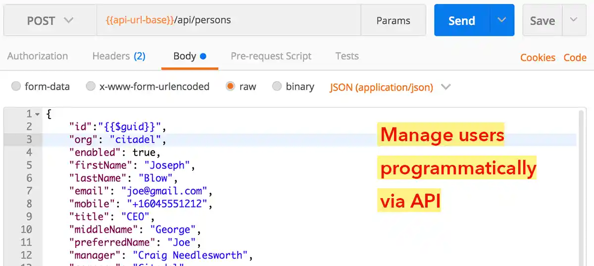 Alternatively, manage your users via our simple REST API.