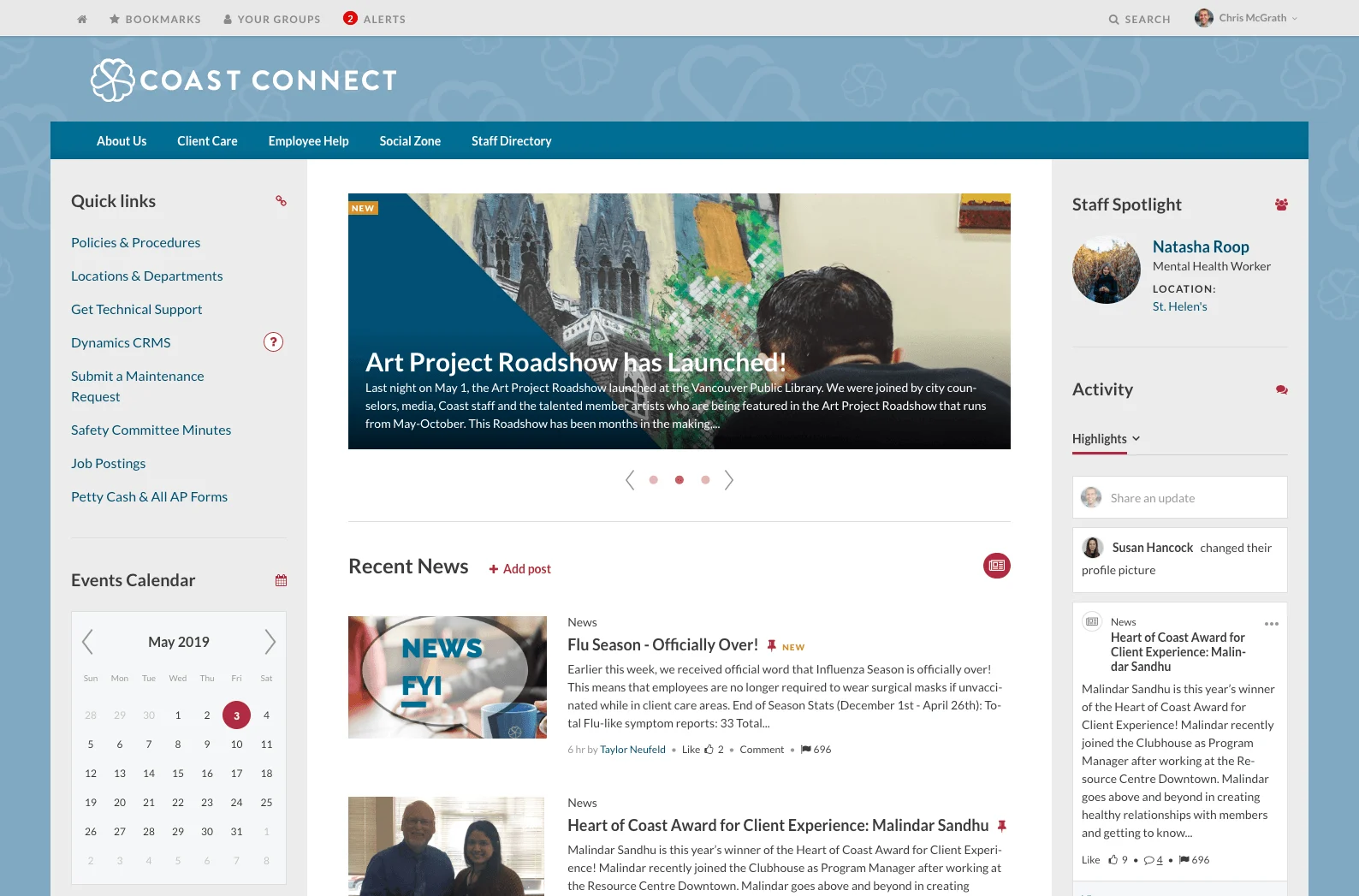 Coast Mental Health needed an effective way to connect these busy front-line workers to up-to-date organization policies and procedures and to make them feel connected to the organization as a whole. Stakeholders wanted employees to be able to share their experiences and successes as a way to build a feeling of community and commitment to Coast Mental Health’s mission.